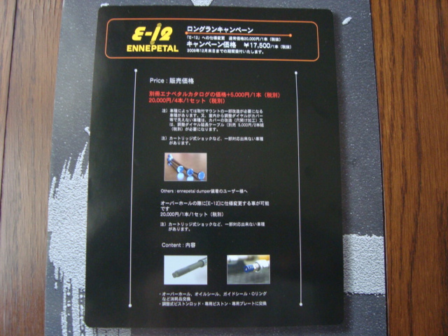 エナペタルさんが、やってくれました~!!(涙) 12段階減衰力調整式ショックアブソーバー“E-12"がついに発売ですよ!! 今まで「減衰力調整なんて必要ね~よ!!」とか言ってなかったか~???なんて言われちゃいそうですが・・・それには理由があるんですよ。