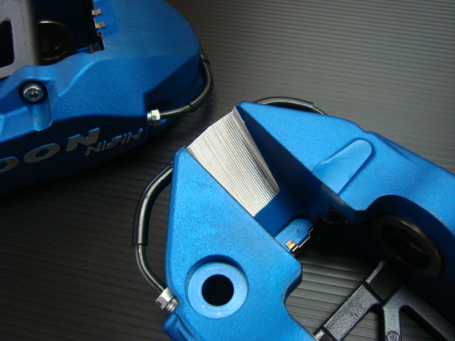 SPOONモノコックキャリパーは写真のようなマシニング加工(¥18,900・税込み)が必要になります。 お手持ちのキャリパーを送っていただければ、こちらで加工することも可能ですし・・・新品のキャリパーに加工したものを送ることも出来ますよ。(加工しちゃいますので保証などはなくなります。 レース専用部品という扱いになりますので、よろしくお願いします。) 気になる方はArrowsにお問い合わせください。