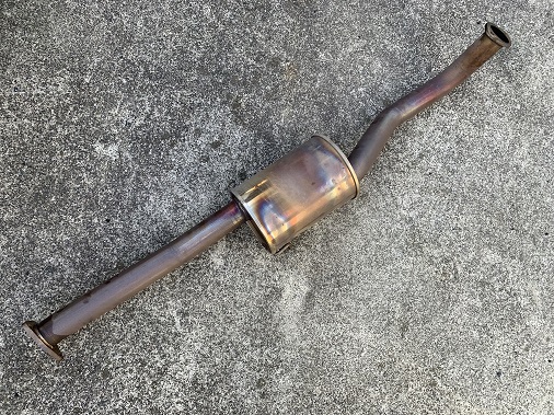 サーキット走行した時にストレートでの伸びが悪いということで、マフラーも交換することになりました。 写真は取り降ろしたスポーツマフラーの中間タイコ部分です。 ストレートタイプが使われているかと思いきや・・・隔壁タイプでした。