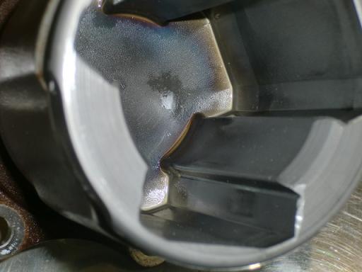 取り外したインボードの写真です。 ケース内側のベアリングの当たり面に「巣穴」は開いていませんが、このような状態でも振動が出る場合があるので要注意です。