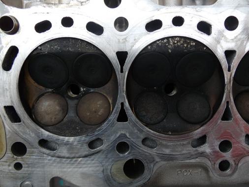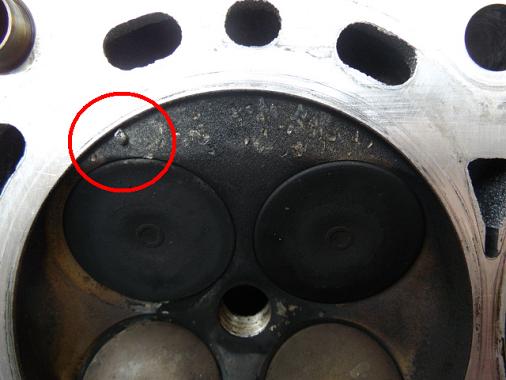 取り降ろしたエンジンをざっと見回してみると、圧縮の抜けていた2番のエキゾーストポートにオイルの跡が・・・。