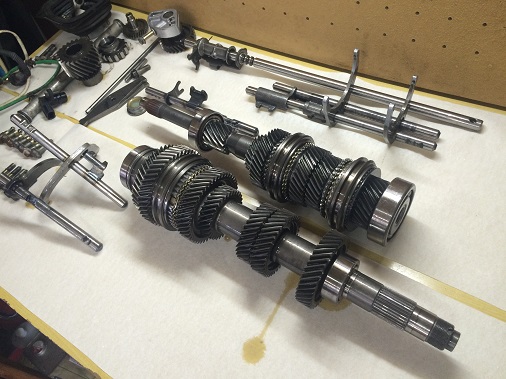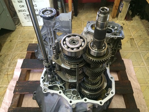 先日降ろした S2000のミッションはです。 写真の状態まで持っていくのにプーラーを使ってギアを抜く作業が少ないのと、シンクロにボール&スプリングを使っていないので不意にパーン!!と弾けちゃって「くぅ。。。(涙)」ってことがないので、86/BRZと比べると楽にバラせますね♪