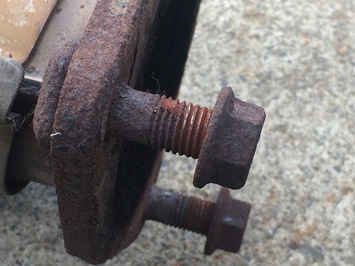 ミッションの中身をチェックして、どこまでパーツを交換するかをメールでお客様を相談している間に、他の部分もチェックします。 上の写真は外した触媒のスタッドボルト&ナットですが・・・サビが酷く固着寸前でした。 次回の作業の事を考えると交換したほうが良さそうです。