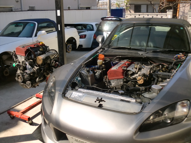 この日の午後、某大手チューニングメーカーの開発スタッフさんが3名ほどArrowsにいらっしゃることになっていたため、とりあえずエンジンを降ろす直前まで作業を進めることにしました。 どこのメーカーさんが何をしにきたのかは・・・ここに書いてしまっても構わないのか分らないため、とりあえずナイショということで!(笑) 今後、ご紹介していく機会があると思いますので、楽しみにしていてください♪