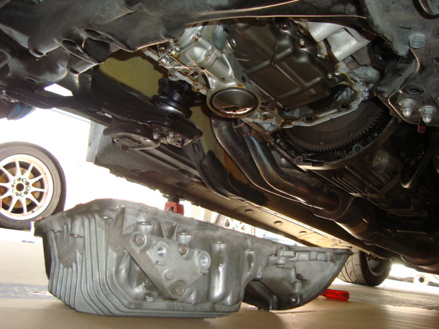 閣下号のオイルパンをバッフル付きに交換中。