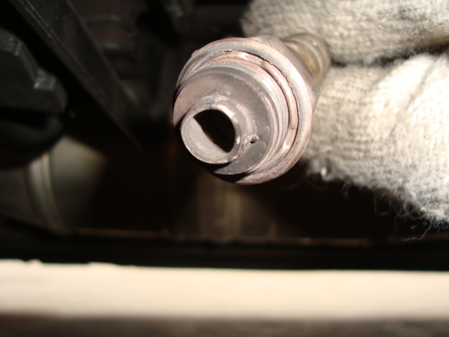 早速、セカンダリーO2センサーを外してみると、センサーの先端がなくなっていましたよ。(滝汗) 「これはもしかして・・・。」と思い触媒を見てみると・・・