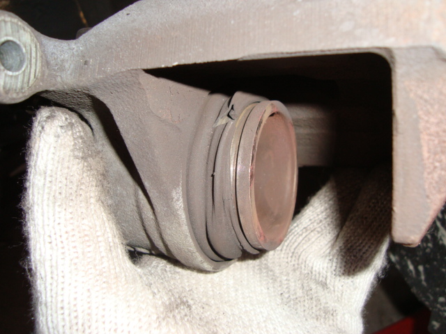 ガ~ン!! フロントのキャリパーピストンのブーツが切れてますよ。(涙)