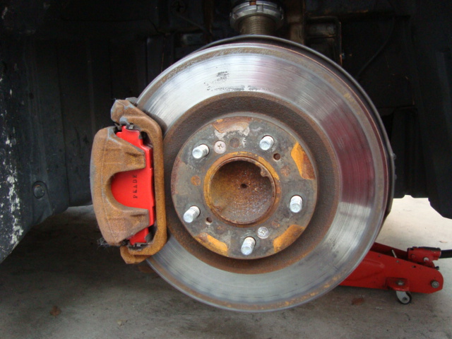 外が暗くなってきたので、とりあえずブレーキパッド&ディスクを交換しちゃいますよ。 Arrowsにはガレージがないので、日没までが勝負なんです。(苦笑) ところが・・・