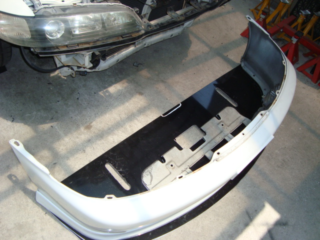 バンパーごと外して、純正リップスポイラー下部全体が水平になるように加工しました。 加工前との違いが判りますか???(笑)