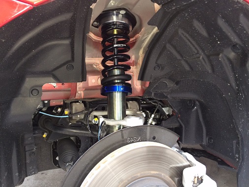 ソウルレッドプレミアムメタリックが綺麗な NDロードスターに車高調を装着させていただきました。 装着したのは Arrows サスペンションキット TYPE-C。 減衰力固定式の男前仕様です! が、オーナーさんは何と女性ですよ♪
