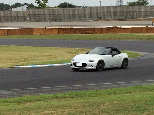 2本目はまた雨が降り出して、完全なウエット状態でのテスト走行になりました。 で、走ってみると・・・これが、実に楽しい♪ リアの流れ出しが分かりやすく、とてもゆっくり動くので回る気がしませんよ。(笑) LSDが入っていないので流れた後のコントロールが難しいというのはあるものの、安定感が抜群なので全く怖くないです。 あちこちでスピンやコースアウトしているクルマを横目に、一人ニヤニヤしながら走っていました。(笑) ちなみにこの時のタイムは 46秒935でしたよ。