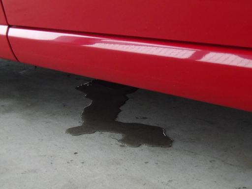ピットに戻ってくるとクルマの下から怪しい液体が!?(汗) 触って臭いを嗅いでみると・・・ただの水???