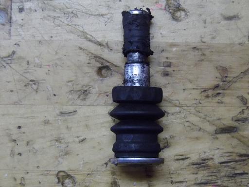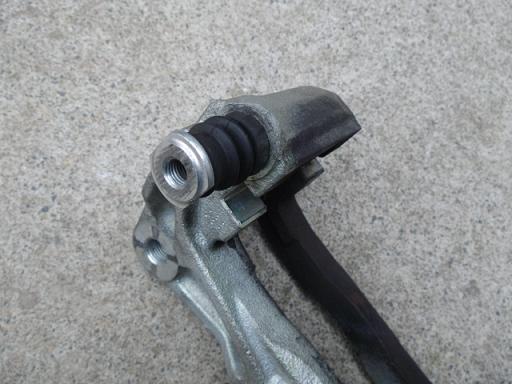 無理やりスライドピンを抜いてみると、先端のゴム部分がボロボロになっていました。 スライドピンが差し込まれていた穴には、グリスがほとんど残っておらず代わりにボロボロになったゴムが・・・。(汗) これも熱の影響なのかな???