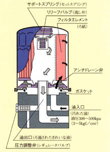 高回転時はフィルター内のリリーフバルブが開いて(オイル粘度が高い時やフィルターが目詰まりした時にも開きます)オイルのほとんどが濾紙を通過しないので、フィルターの大きさ自体はあまり関係しないのではないかと思うのです。 それよりもフィルターの油入口の面積のほうが影響が大きいように思えます。