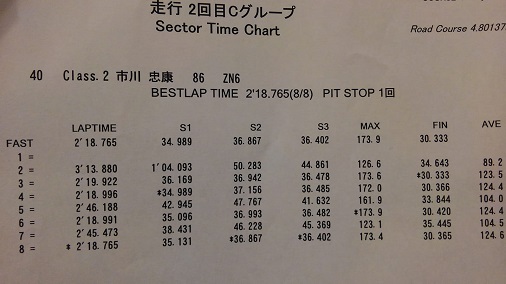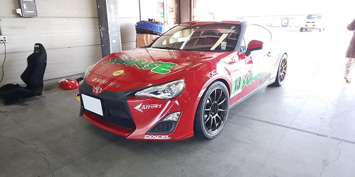 今回、もてぎチャレンジグランプリのレギュレーションに合わせてタイヤのサイズを 265/35R18に変更。 それに合わせて Arrows 86で蓄積してきたデータからサスペンションのリセッティングをさせていただきました。 リセッティング後初めての走行がもてぎチャレンジグランプリだったのでちょっと心配だったのですが・・・市川選手のテクニックと集中力で、86とは思えない素晴らしい記録を出すことが出来ました。