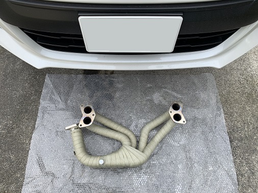 BRZの純正エキマニ&純正触媒を、パワークラフト製エキマニ&メタル触媒に交換させていただきました。 ありがとうございます♪ ご覧の通り、エキマニはサーモバンテージを巻いて熱対策もバッチリです♪
