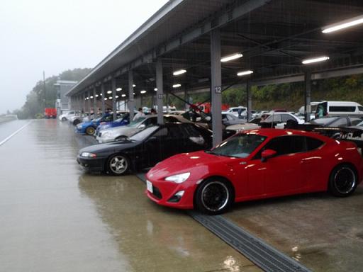 富士スピードウェイ・ショートコースでサーキット用の車高調のテストを行ってきました。 本当は走りなれているTC1000あたりで行ったほうがデータを集め易いのですが、お客さんからのお誘いというのと、「早くサーキット用の車高調を!!」というお客さんからのプレッシャーもあり、富士ショートでのテストとなりましたよ。 ところが、品行方正な私が参加ということで・・・朝から土砂降りです。。。(苦笑)