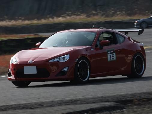 その後、ご好意により Arrows 86で走らせていただくことになりました♪ 先日の富士ショートでのデータを基に、ストローク量を計算してスプリングレートをアップ&リアのバンプラバーを抜いてきました。 計算上は底付きしないはずですが、こればかりはやってみないと分かりませんよ。 車高を徐々に下げていってもいいのですが、2ヒートのみの走行ということで時間が無かったというのと、車高を落とした状態でのクルマの動きをどうしても確認したかったため、いきなりこの状態で走りますよ。 高速コーナーで「カツンッ!!」といったら、正直シビレますな。(苦笑)