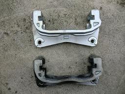 とりあえず、GTグレードのフロントブレーキローターを流用することにしてみました。 用意するのは、GTグレードの純正ブレーキローター&純正キャリパーサポートだけ♪ 何と、素晴らしい。。。(涙)