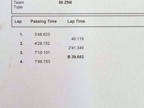 1周目・・・ポジション取りが悪く最終コーナー出口で他車に引っ掛かり 40秒119。 2周目のアタックは断念して周囲の状況を確認しながらピットイン。 クリアランスを見つけて、再びコースイン!! 2回目のアタックで 先日のベストタイムを 0.121秒上回る 39秒652が出ました♪