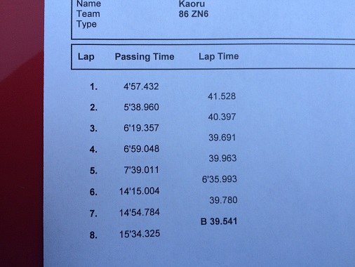 Arrows 86も久々に RE-71Rを履いて走りましたよ。 結果は 7周目に出した39秒541がこの日のベストとなりました。 暖かくなったこの時期としてはまずまずのタイムなのですが・・・3周目の最終コーナー出口でシフトミスをして惰性でコントロールラインを過ぎた時のタイムが 39秒691だったんですよね。。。(涙) 「たら」「れば」を言っても仕方ないんですが、シフトミスをしなければもうちょっと良いタイムを刻めたかもしれません。(苦笑)