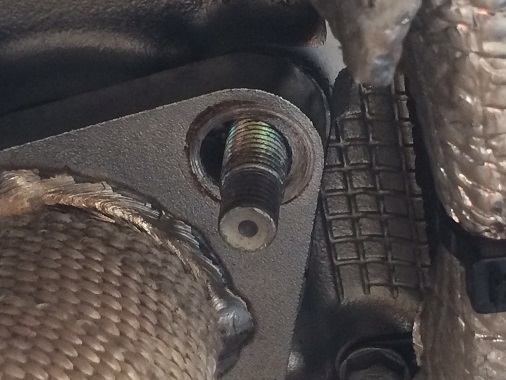 実はこのエキマニ・・・左右のバンクからきたパイプをそのまま溶接してあるタイプでして、熱が加わった時にできる歪みの「逃げ」がありません。 86/BRZ用の社外エキマニに差込み式になっていたりジャバラパイプが多く採用されているのはこの「逃げ」を作るためなんですね。 このエキマニの場合はスタッドボルトを通す穴を大きくすることで「逃げ」を作ろうとしたようですが、残念ながらそれ以上に歪んでしまったようです。