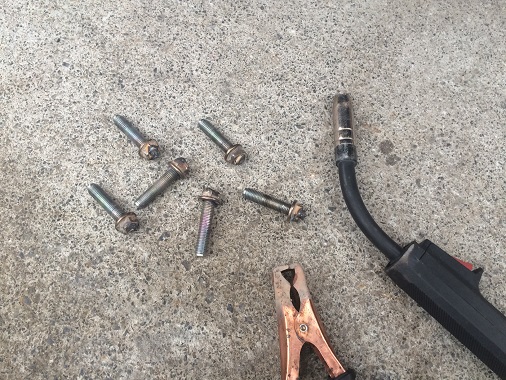 ネジ山が潰れてしまったスタッドボルトはダブルナットでは外すことができなかったため、ナットを溶接して外しました。 ちなみに・・・今、86のクラッチ交換作業をしていますよ。(苦笑)