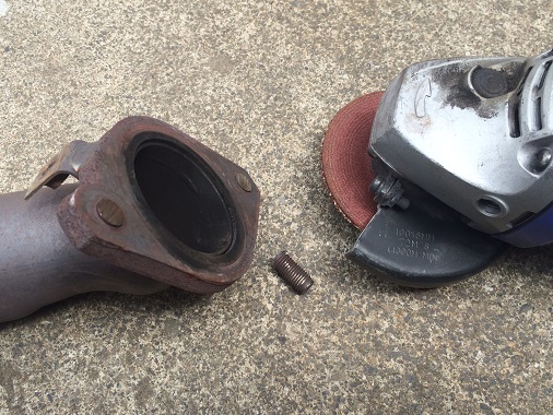 サポートパイプ側の固着が酷く、スタッドボルトにナットを溶接してもまたねじ切っていしまうのが目に見えているので、ここは違う方法で外すことにしましたよ。 ちなみに・・・今、86のクラッチ交換作業をしていますよ。(苦笑) ってことで、新品のスタッドボルトが入荷するまで作業中断です。