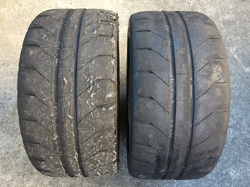 冷えた状態でのグリップが低くタイヤが温まると高いグリップを発揮するところは他のハイグリップラジアルと同じですが・・・その差が非常に大きいのがRE-05Dの特徴です。 また、最大グリップを発揮している時間(距離)が短いのも特徴で、タイヤカスが付きやすいのが原因の一つのようです。