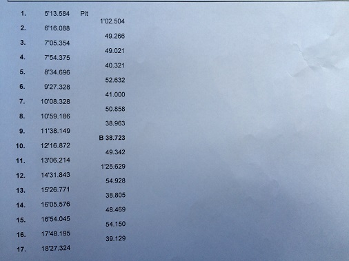 先日の Arrows 86のベストタイムを更新したかったのですが・・・同じ枠で走ったクルマの台数が多く、アタックのタイミングを上手く合わせることができません。 周回を重ねながらチャンスを伺ったのですが、タイヤの美味しいところを引き出すことが出来ずに終了。 風が強く砂塵の影響もあって 38秒723が今日のベストタイムとなりました。