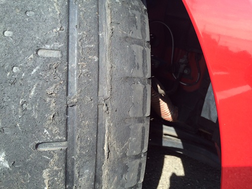 ということで、本日も TC2000を走ってきましたよ。 結果は 1分3秒825で撃沈。。。(涙) 走り始めからフロントのグリップ感が乏しく「コースが荒れてるのかな?」と思いながら走行すること 4周目・・・最終コーナー立ち上がりでコースアウト。 久々に草刈しちゃいました。(苦笑) 戻ってきてタイヤを確認すると、右フロントタイヤ内側の表面ゴムが無くなってました。 走る前に「そろそろかな?」とは思っていましたが・・・こんなに早くなくなってしまうとは思いませんでした。 β02を使うときは要注意ですね。。。