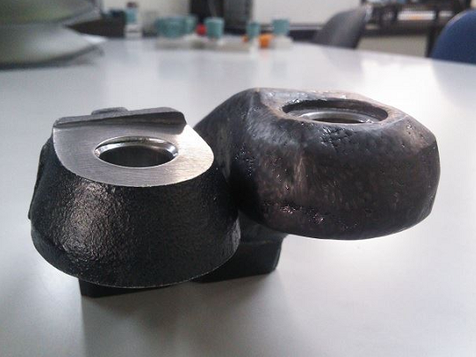 折れやすいS2000のフロントロアアーム先端をドライカーボンで補強!! 約1.4倍の強度!!(純正アームが4.5tで破綻するのに対し補強アームは6.5t) 価格は¥63,000/1本(税込み)!! こんなのどう???