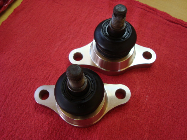 け~すけ号の続きですよ。 フロントのキャンバーを増やすために、純正のボールジョイントを抜いて、Arrowsキャンバージョイイントベースに打ち込みます。