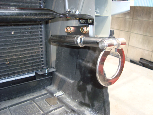 そこで、Arrows牽引フックブラケットの登場となるわけです。(笑) 牽引フックブラケットはノーマルの牽引フックも付くようにネジピッチを同じにして作ってあるのですが・・・どうせなら、Arrowsステンレス製牽引フックを付けちゃいましょう!!(笑)