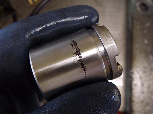 同じく S2000のリアキャリパーのピストンです。 一見、汚れのように見えるこの部分、実は・・・