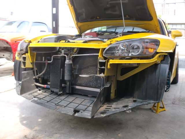 閣下号がオイルクーラーの取り外しとブレーキローターの交換にご来店♪ タイヤのご相談も受けましたよ。 秋からのサーキットイベントに向け、次第に気合が入ってきた模様。。。(笑)