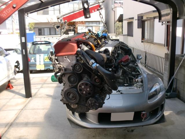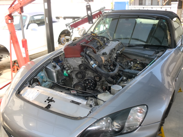 この日の午後、某大手チューニングメーカーの開発スタッフさんが3名ほどArrowsにいらっしゃることになっていたため、とりあえずエンジンを降ろす直前まで作業を進めることにしました。 どこのメーカーさんが何をしにきたのかは・・・ここに書いてしまっても構わないのか分らないため、とりあえずナイショということで!(笑) 今後、ご紹介していく機会があると思いますので、楽しみにしていてください♪