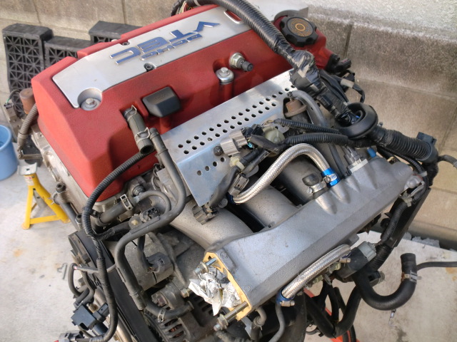 こちらが積み込むエンジンです。 「中古リビルトエンジンで見た目はちょっと汚いけど・・・10万キロオーバーのエンジンよりも調子は良いはず!!」ってことで白羽の矢が立ちました。(笑)