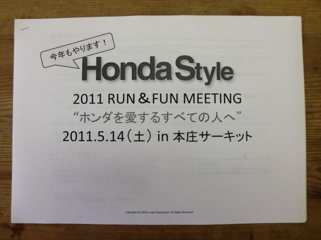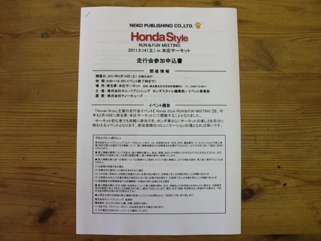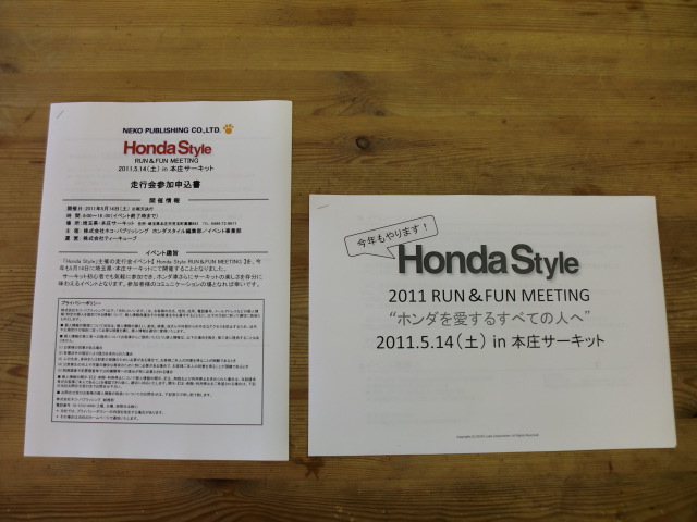 5月14日(土)本庄サーキットにて、Honda Styieさんが主催する「RUN & FUN MEETING」が開催されます!! サーキット初心者でも気軽に参加でき、ホンダ車さらにサーキットの楽しさを存分に味わえるイベントです。 走行会参加者用の申し込み用紙がArrowsに用意してありますので、ご来店いただければお渡しすること出来ます。 今回もArrowsはブースを出展する予定です。 チューニングに関するご相談があれば気軽にお立寄りください♪スポンサードリンク