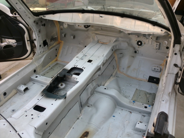 中古ボディを使ってにゅ~Arrows号を製作中です。 まずはドンガラにしてボディ補強をしますよ。 補強は最近流行?のパネルボンドを使うことにしました。 ご存知の方も多いと思いますが・・・スポット溶接が点で接合するのに対しパネルボンドは線(面)で接合するので、パネル同士の接合面積が増え更なる剛性アップが望めます。 また、接着剤なので熱による歪の影響が一切無く、施工後錆びる心配も殆どありません。 さらに、シール材代わりに充填することも出来、重量増をほとんど気にする必要のない優れものなんです。