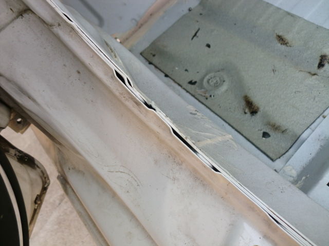 雨水などが浸入しないようにシール材が塗られている部分は、裏を返せば隙間があるということ。 このシール材を除去した後にパネルボンドを流し込めば、補強とシーリング効果の両方が得られるというわけです。 キャビン内は広範囲にわたってシール材が使われているので、かなりの効果が期待できそうです♪