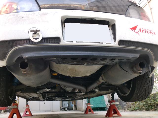 10万キロオーバー&Supercharger搭載のお疲れエンジンにトドメを刺したと思われる純正マフラー。 デフは1WAY+4.3ファイナルの組み合わせに変更しました。