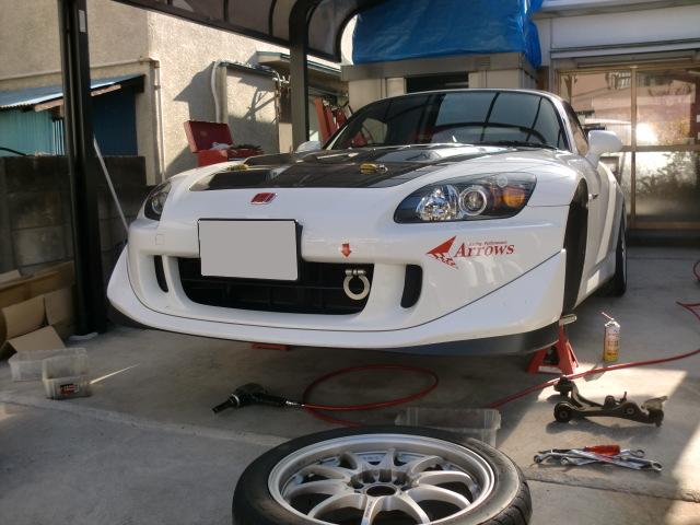 リアのハブベアリング交換にご来店いただいた真○さんのエスです。 「Arrowsは凄いクルマばかりなので、自分のような普通のクルマのメンテナンスで申し訳ないのですが・・・。」と仰られていましたが・・・全~然、オッケーですよ♪(笑) 確かにArrowsはサーキット派のお客さんが多いですが、ノーマル車でオイル交換などのメンテナンスにご来店いただくお客さんもいっぱいいます。 量販店で売られている激安オイルのように安くはないですが、エンジン、ミッション、デフオイル全て交換しても¥21,700(税込み・S2000にWAKO'Sオイルを使用した場合)ですし、目視できる範囲で下回りのチェックもしていますから気軽にお立寄りください。