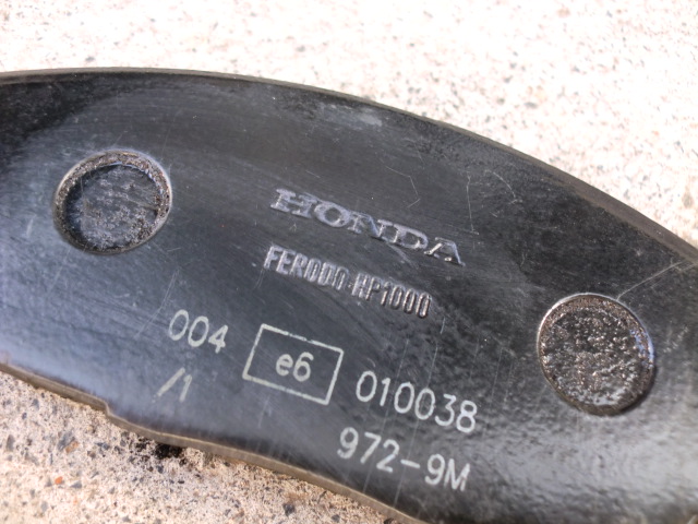 リアのパッドを交換しようとすると、キャリパーが外れない。。。(汗) 「サイドブレーキを下ろし忘れたかな?」って感じです。 他に外さなければいけないボルトもなさそうだし・・・ってことで、ハンマーの柄を使って叩いてみたら外れました♪(←結構激しく叩きました。笑) 外れたパッドを見てみると、パッドのシムに貼ってある樹脂?のようなものが溶けてキャリパーにくっついていた模様。 鳴き止めかな???(謎)