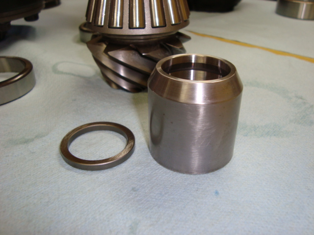 リジットタイプのディスタンスカラーをスペーサーと一緒に取り付けます。 リジットタイプのディスタンスカラーは、クリアランス変化の大きい純正カラーと交換することで安定したギアの歯当たりを得ることが出来るんですよ。