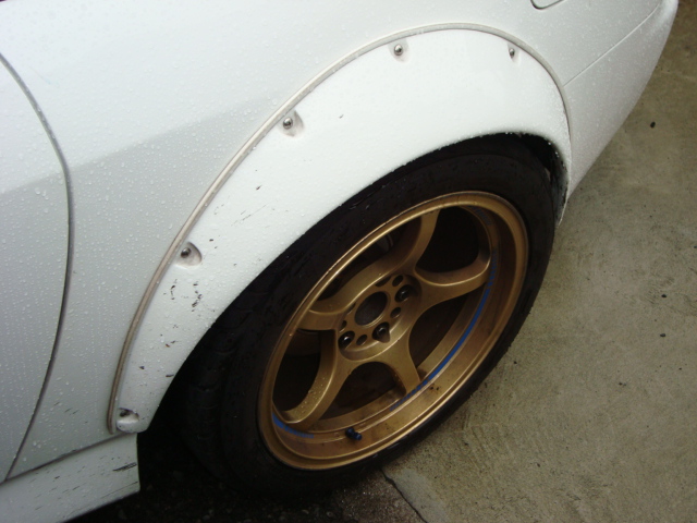 リアオーバーフェンダーです。 プレスラインのところでオーバーフェンダーが切れているのが判ると思います。 下側まで伸ばすにはパテ埋めが必要となりますよ。