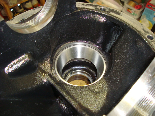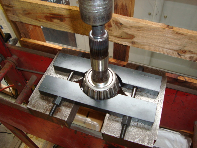 デフキャリアにベアリングアウターレースを打ち込みます。