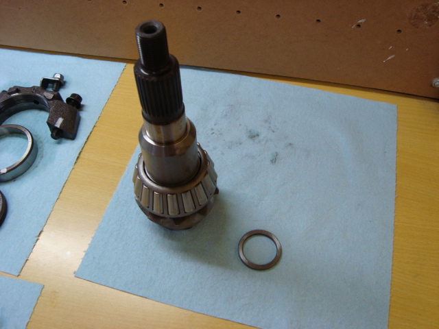 ピニオンギアにスペーサー&ベアリングを圧入して、リジットタイプのディスタンスカラーを入れます。 ディスタンスカラーもスペーサーを使用してクリアランスの調整をしますよ。