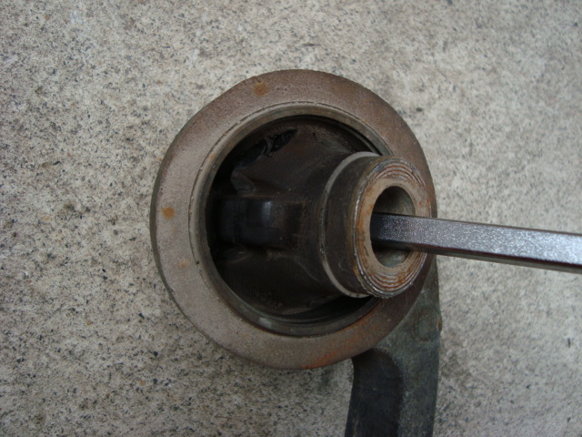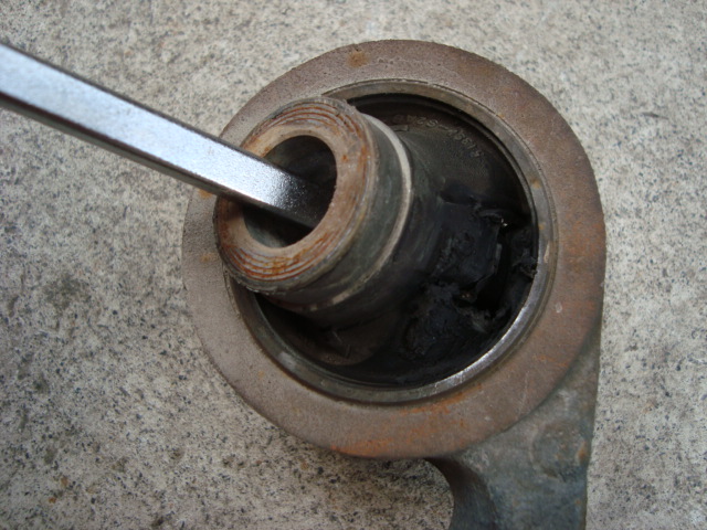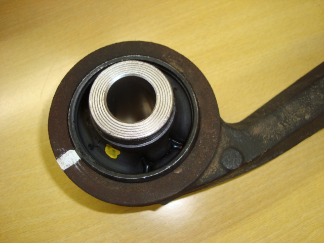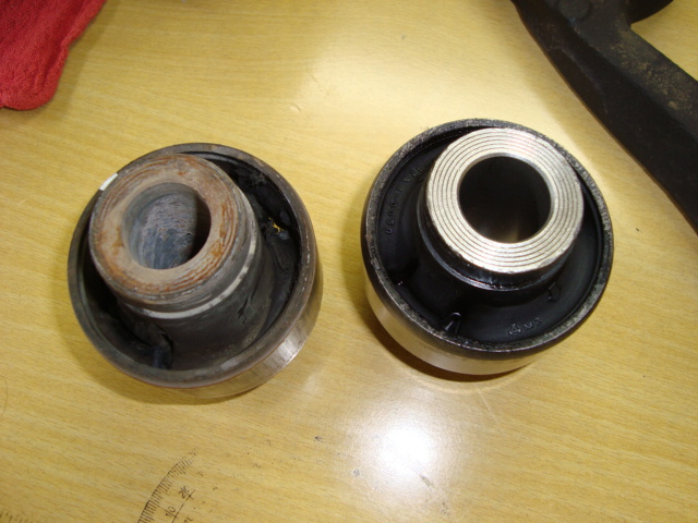 古いブッシュを抜いて・・・新しいのと交換し・・・打ち込みます。 この後、アームを取り付け・・・ショックを取り付け・・・アライメントを調整して、Cha号の作業は終了です。 あぁ、フロントのレインフォースも撤去しましたね。。。