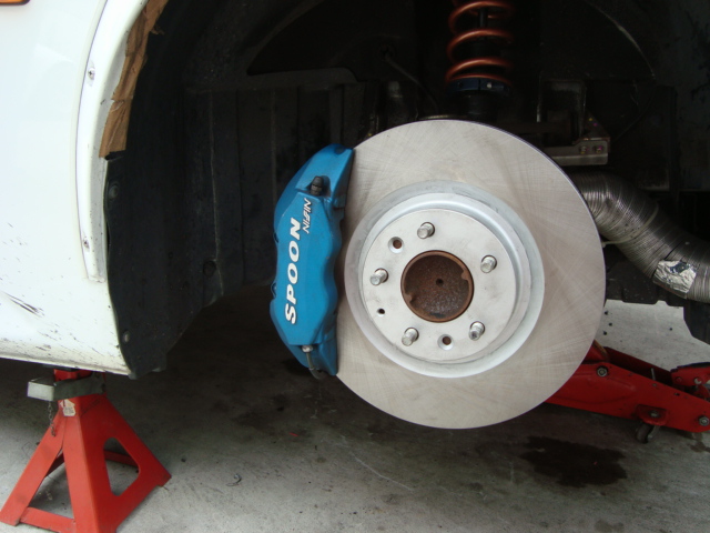 18日(土)・・・SPOONモノコックキャリパーが装着済みのSam号に、フロントビックローターキットを投入!! ローターの大きさは写真でもハッキリ分かりますね~。 本人も大満足のようです。(笑)